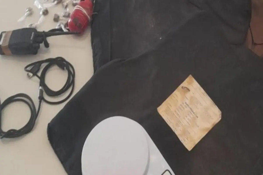 Durante a varredura, os policiais localizaram uma granada, um colete balístico, aproximadamente 500g e 10 pinos de cocaína, 88 frascos de crack, 14 porções de maconha, uma balança de precisão, um rádio-comunicador e outros materiais usados para fracionamento e comercialização de entorpecentes.
